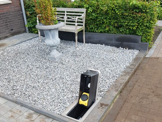 Bepaal nu de ideale locatie voor jouw laadpaal of wallbox. Je moet de laadpaal op eigen grond een plaats geven én er ook rekening mee houden dat de kabel niet over een trottoir mag lopen zodra je de auto oplaadt. Als een van deze twee wel het geval is, neem dan contact op met de gemeente. Er zijn tegels met een ingebouwde kabelgoot. Sommige gemeenten willen medewerking geven om zo de kabel over het trottoir te laten lopen.